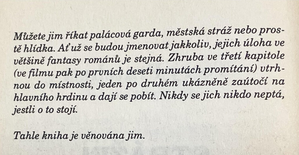 Knížku můžete číst v originále, angličtina je hezká a nijak těžká, ale pro první seznámení s Pratchettem sáhněte určitě po českém překladu od skvělého Jana Kantůrka, který mimochodem knížku také namluvil. A pokud se vám příběh bude líbit, členové hlídky jsou hlavními postavami i dalších románů ze zeměplošského prostředí.